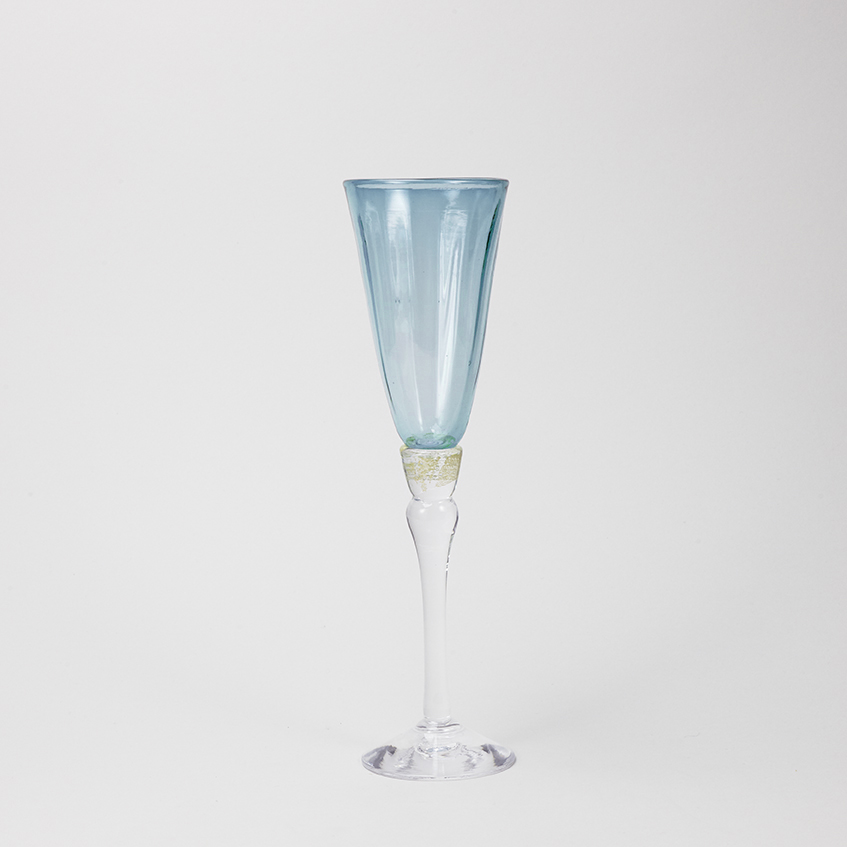 Festglas med fot i klarglas och detalj i bladguld av Katarina Löfström.
