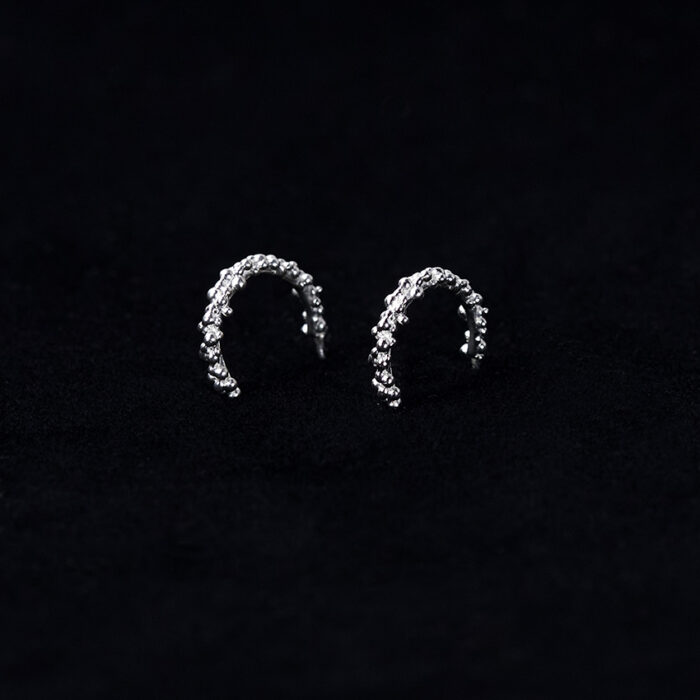 Ett par örhängen ”Vallmo” gjutna i silver av Marianne Hellman.