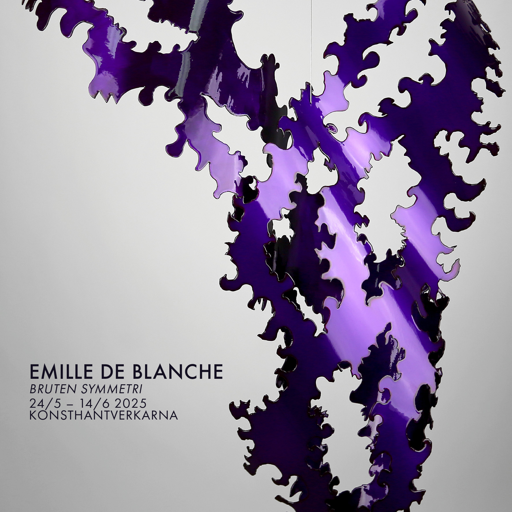 Emille de Blanche visar en serie skulpturala verk som utforskar spänningarna mellan det organiska och det artificiella i utställningen Bruten Symmetri. Skulpturerna bygger vidare på hennes tidigare arbeten men har utvecklats genom nya perspektiv som genomsyras av hennes utforskande av abstrakt automatism, biomorfa former och relationen mellan det organiska och det artificiella.